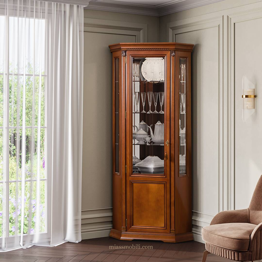 Шкаф для посуды угловой Лоренцо вишня Lorenzo вишня купить в Уфе