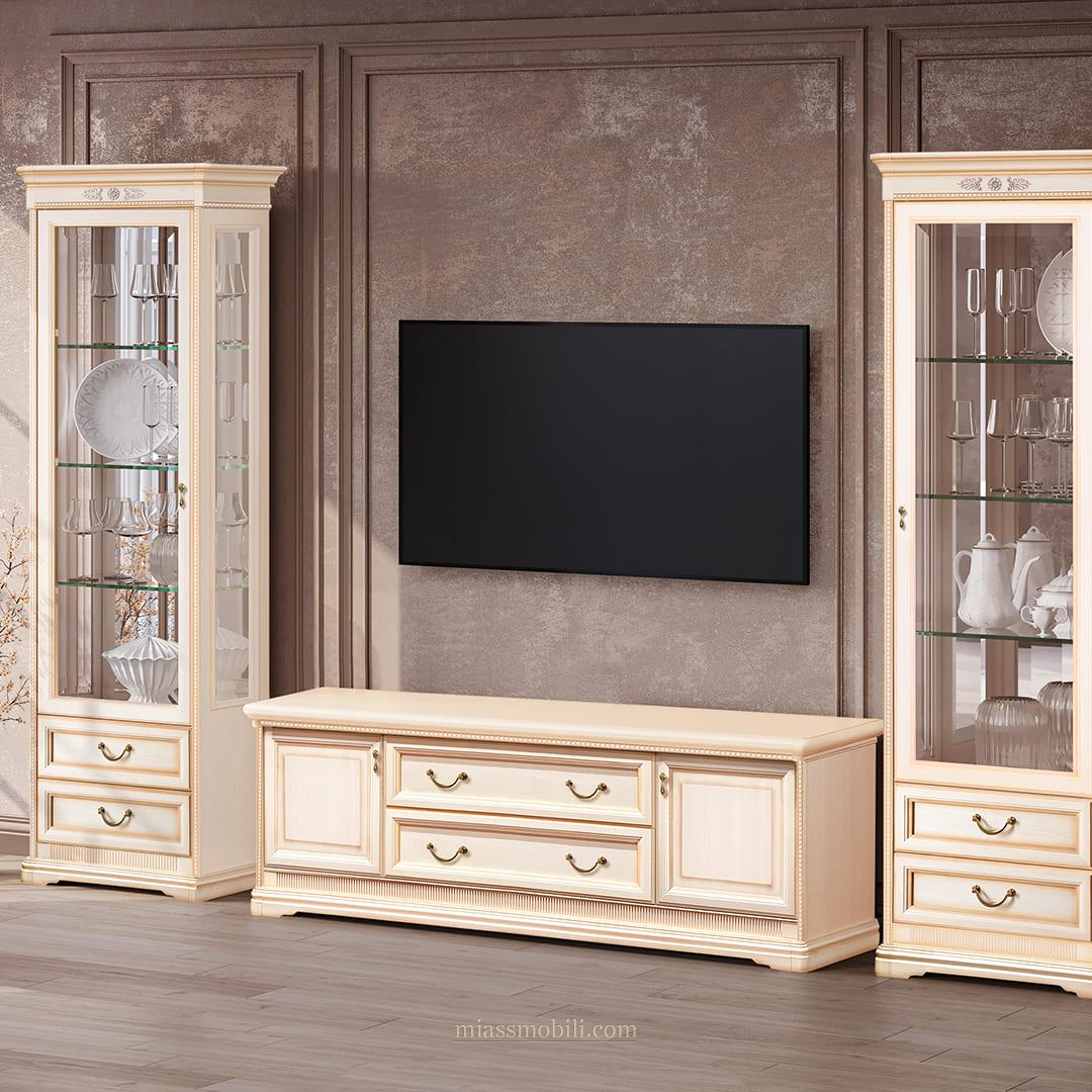 Тумба ТВ крем большая с филенкой Джоконда крем купить в Уфе