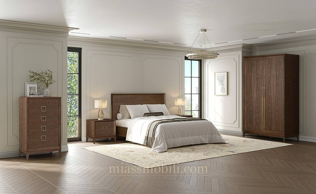 Эта коллекция выполнена в стиле современная классика, с применением натуральных материалов массива и шпона ясеня.